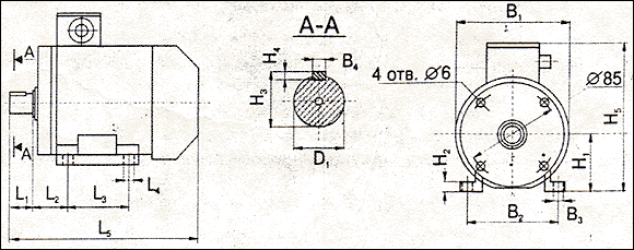 | Тип двигателя | L1 | L2 | L3 | L4 | L5 | B1 | B2 | B3 | B4 | H1 | H2 | H3 | H4 | H5 | D1 |