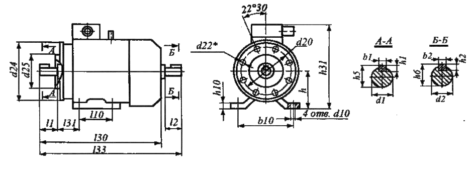 Габаритные, установочные и присоединительные размеры электродвигателей АИР 50 - 250.